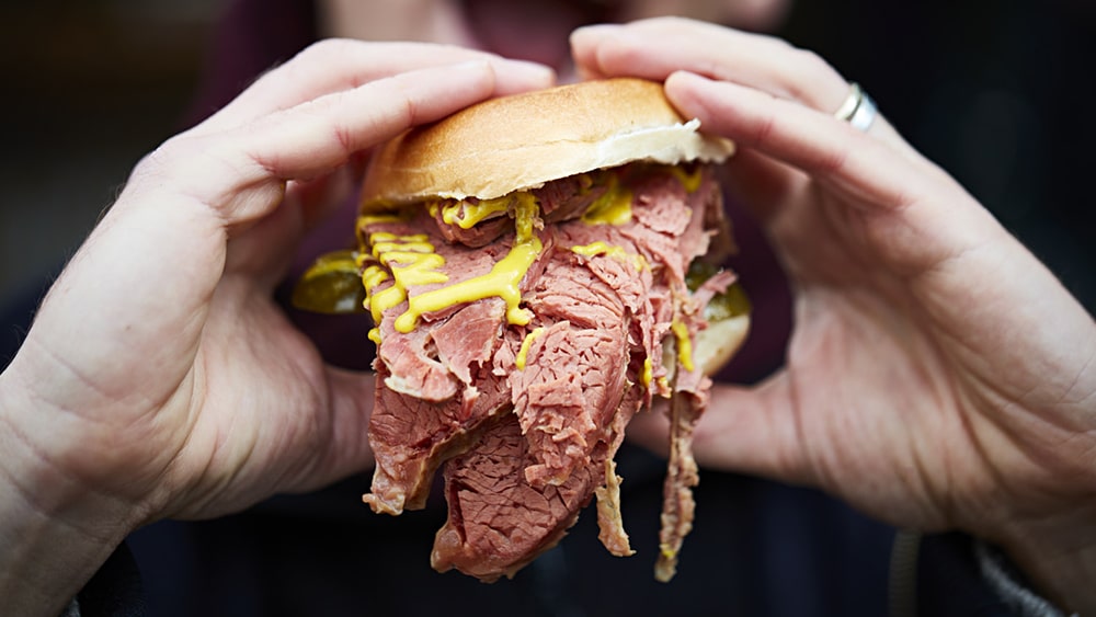 Many cultures have a tradition of preserving meat in salt – the protracted shelf life of salted beef made it popular with the British merchant navy, Andrew explains. But the tender strips of delicately cured and gently spiced brisket we know and love today? “Predominantly it was eastern European Jews that came to this country and brought their favourite foods,” explains Andrew, whose ancestors hail from Russia and Poland.