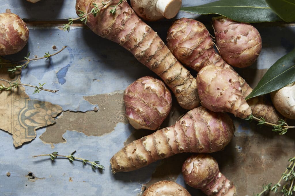 For the first flush of winter, as the cold and the wet really begin to set in, I am more than happy to wallow in the comfort of beige and warming food, of afternoons spent in the slow construction of a braise. After a week or so of this, however, I often find myself craving something that will balance the tangled bowlfuls of collapsing meat and potatoes: a little sweetness and light. If these are not qualities particularly associated with the potato, then luckily winter’s other roots and tubers possess them in abundance, their gnarled and muddy exteriors revealing, after a scrub and a cut, the clean white flesh within.
