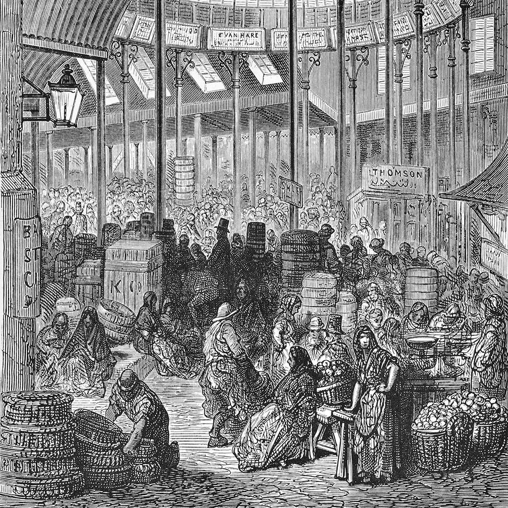 For a century or so, the all new Borough Market remained busy and popular but, set back from the road, it was essentially fairly parochial in character, selling a large range of everyday produce in relatively small quantities. It was during the 19th century that all this changed, with the Market rapidly expanding to become an institution of national significance, devoted solely to the fruit and vegetable wholesale trade. The main engines of this transformation were the urbanisation of south London and the arrival of the railway – as the population boomed, the growing demand for a wholesale market with excellent transport links meant that Borough Market was perfectly placed to benefit. As business flourished, the Market took over the land that forms the Green Market, then later bought and demolished the buildings on Winchester Walk to make way for what is now Jubilee Place.