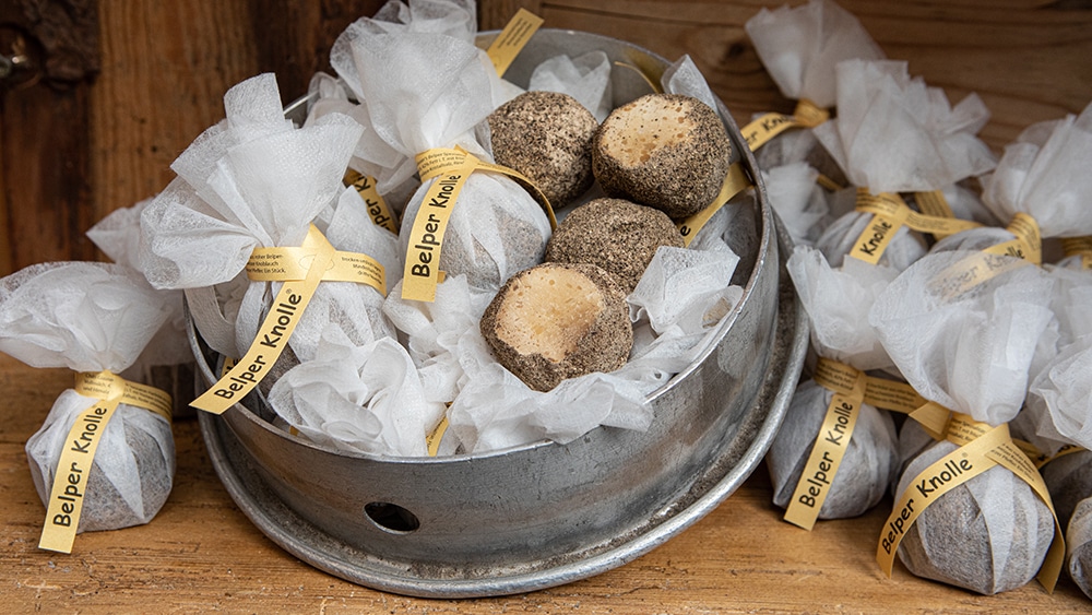 You may already know Jumi’s Belper Knolle: a stone-shaped ball which, even in ‘fresh’ form, is hard and chalky, but also sharp, salty, and deceptively creamy. It needs to be sliced very finely, with a mandolin or indeed the truffle-style slicer Jumi sells, and even the lightest curl adds so much – not just a dairy tang, but also the undertone (or is it top note?) of garlic and a touch of fire from the black pepper dusting. Excellent with salads (particularly tomato), pasta, meat… might this be the ultimate embellisher?