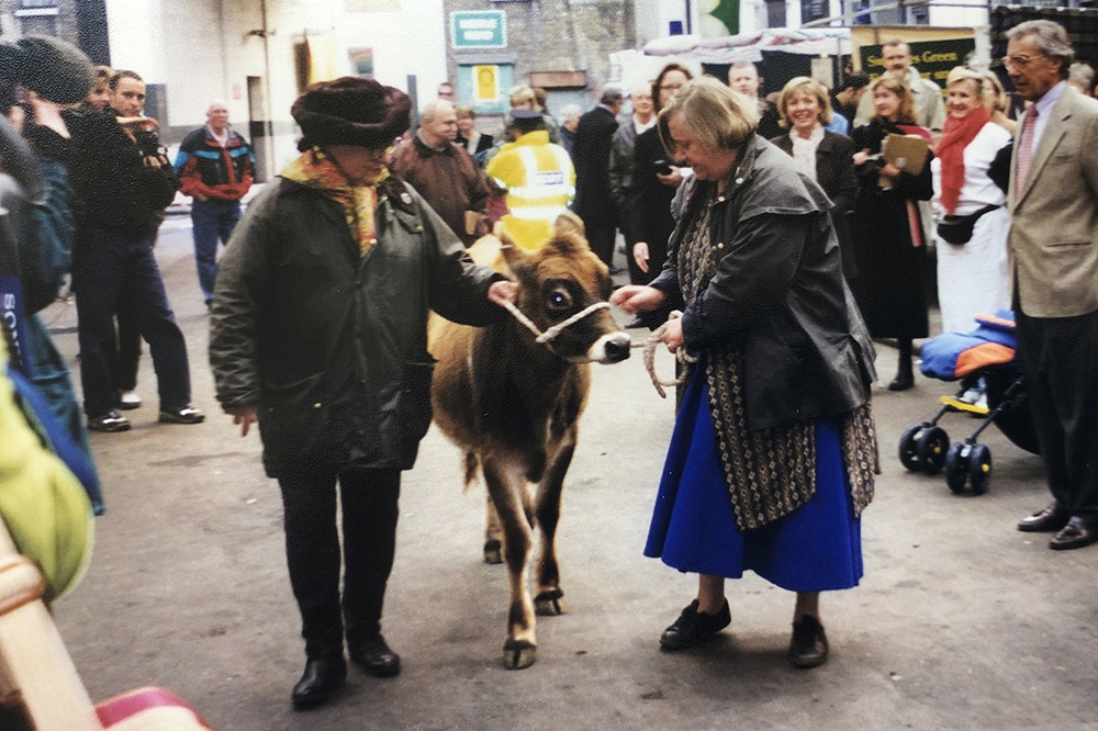 People came from miles around. Who they were, I just don’t know. It was like rain on a desert – the appetite was clearly there, but it was completely untapped; the very first farmers’ market had happened in Bath only that autumn, the next one wouldn’t happen until after Christmas. We did get quite a lot of press. I had rung Clarissa and said, “Clarissa, suppose nobody comes…” She was quite famous by this time as one of the Two Fat Ladies. She said, “Do you want me and Jennifer [Paterson] to open it?” That certainly helped. At quarter to 11 on the Friday we had a press call – there was Jennifer with her long fingernails, milking a goat.