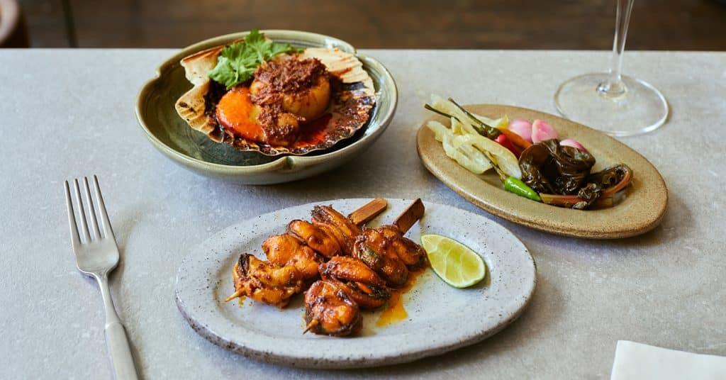 Andy: It’s a dish associated with the far south of Thailand. It’s incredibly delicious but not really known outside of Thailand. It’s based on coconut curry sauces – almost like a cousin of satay, but a bit more complex. The protein is dipped in the curry sauce and then repeatedly basted with it as it’s grilled. There’s lots of variety out there in the sauce, the technique and the proteins that are used. It’s most commonly chicken but it can be seafood – whole bits of fish or shellfish – and, particularly in southern Thai Muslim communities, meats like goat or mutton. Some of the sauces have lots of spices in them, making them almost Indian or Persian in their inflection. And others have no dried spice – it’s more like a classic Thai curry paste with lots of black pepper and lemongrass. It’s a whole family of dishes, and we’re going to be exploring it fully.