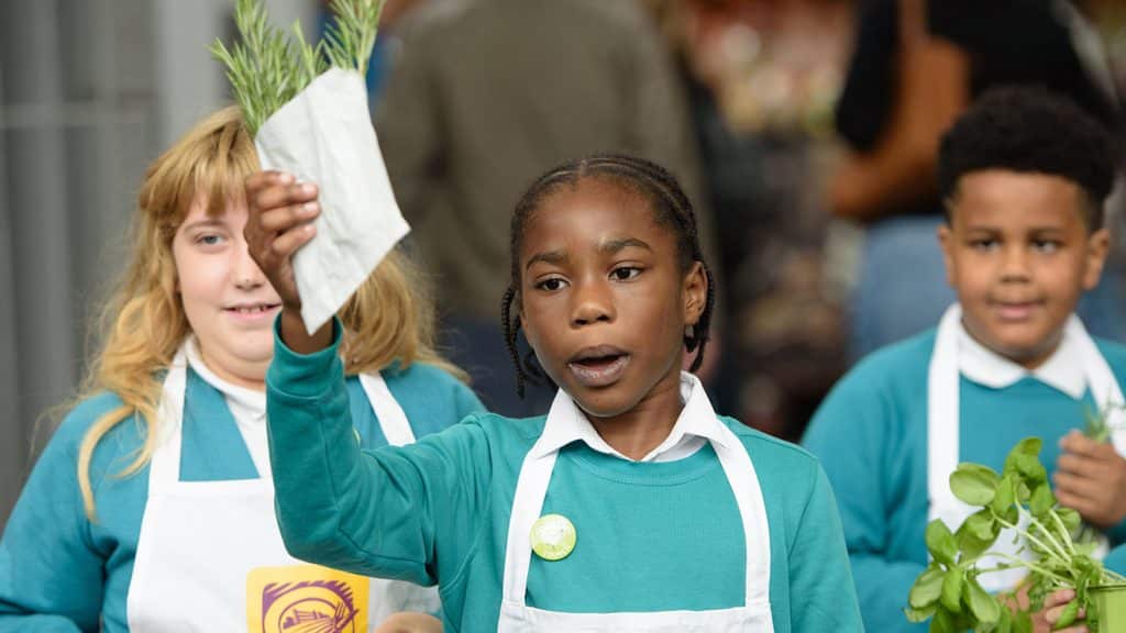 The Young Marketeers programme exposes children to vital knowledge about food: how it’s grown, how it’s sold, how it can be used, how it affects our health and the environment around us. But just because these young people have an opportunity to learn about high-quality, sustainable food doesn’t mean they can easily access it in their daily lives, such are the iniquities against which School Food Matters is battling. “Not that I’m ever going to give up doing so, but talking about organic, high-welfare food when children are hungry every day is hard to navigate,” says Stephanie. “What we want is for every child in every school to have a delicious, nutritious, sustainable meal, but what we must do first is give them the nutrition they need to thrive.”