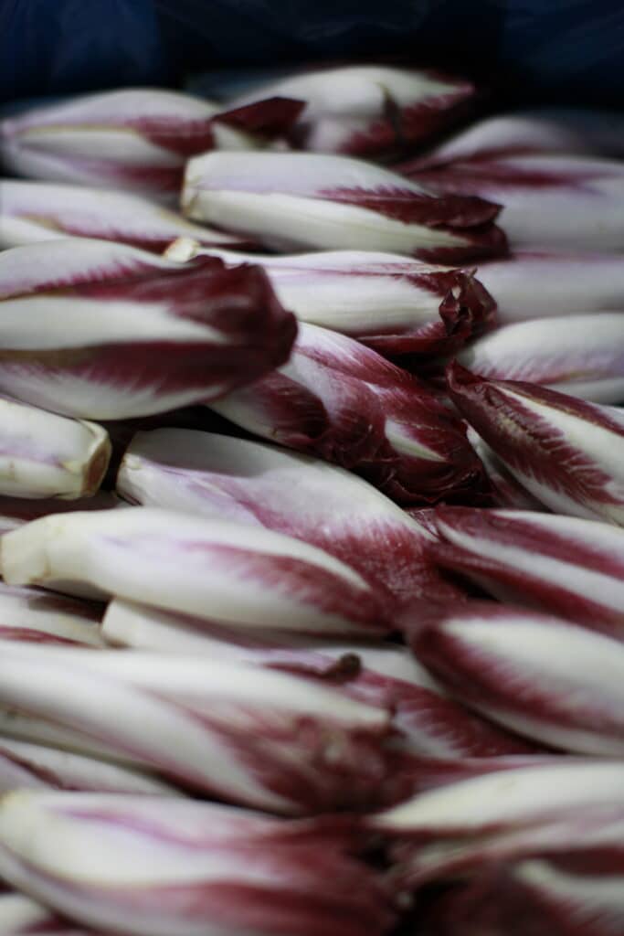 I don’t remember when I first encountered a radicchio – I suppose it was in a supermarket bag of Italian mixed leaves or something similar – but I can’t imagine I particularly enjoyed it. The taste for bitterness, which is the defining feature of all radicchios – the standard round chioggia, feathering treviso, tendrilled tardivo, and dappled castelfranco – is supposed to be the last acquired in the development of the palate, as far as you can get from the raw love of sweetness and fat we learn literally at our mother’s breast. Bitterness, after all, is often in nature the taste of poison, and there is a reason a child’s first reaction to, say, an olive, is so often to spit it out. Hoppy beer, black coffee – these are tastes we acquire. Much of the cultivation, in fact, of wild greens into the spinaches and lettuces which now fill the aisles has been to breed out the bitterness. Be that as it may, and without wishing to make wild generalisations, it is also true that the Italian tolerance for bitterness is far greater than that usually found in this country.