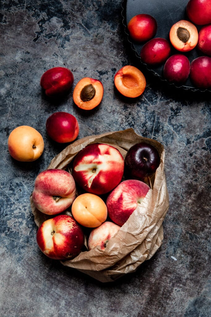 I can be on the Walthamstow marshes, surrounded by nettles, fox poo and teenagers playing football and feel like I’m in the south of France if I’m biting into a perfectly plump peach – its honeyed juices dribbling shamelessly down my chin. There’s something outrageously, almost illicitly good about a fleshy mouthful of peach that’s been left to get warm-to-bursting in the sunshine, and if I’m hauling our meals to the park to escape our stifling London apartment in high summer, these make for a blissful dessert, just as they are.