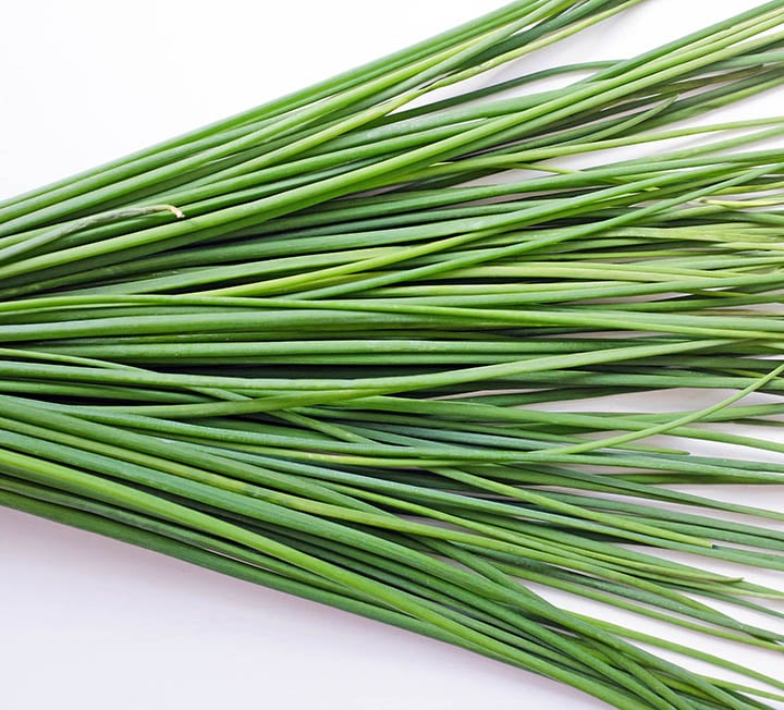 Chives lose much of their flavour when heated, so are added as a garnish at the end of a dish’s preparation.