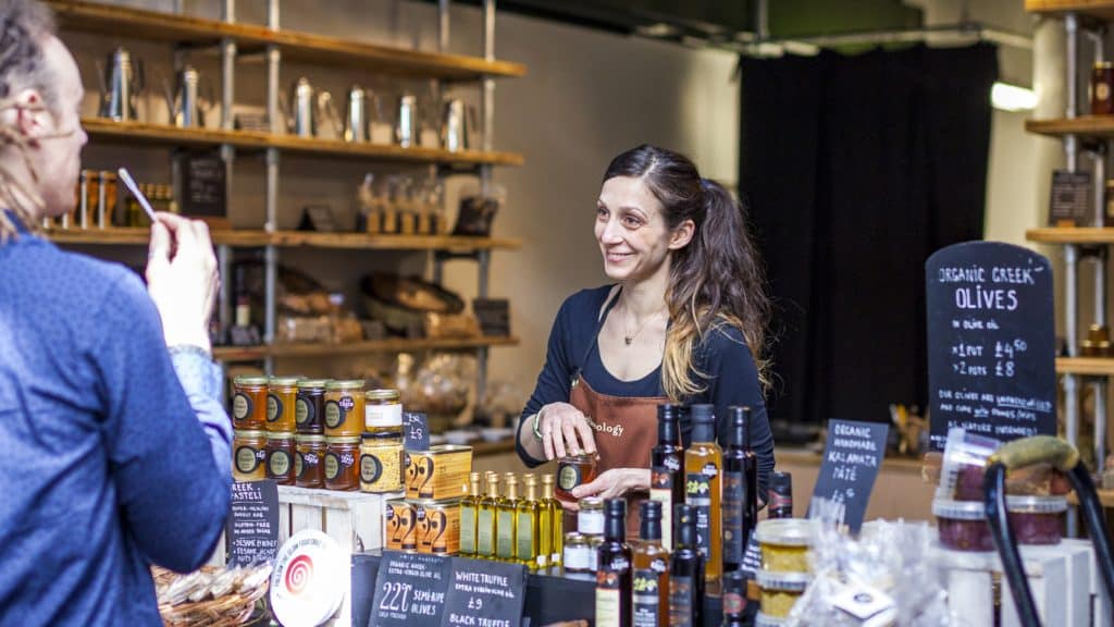 Marianna Kolokotroni, founder of Oliveology, is a font of knowledge about the Greek products she sells. She can speak at length about provenance, the varying tasting notes of olive oil and explain the difference between commercial olive production and her naturally cured ones. Then there’s Steve Hook behind Hook & Son, a stand selling organic, unpasteurised dairy products, who has endless entertaining and informative anecdotes. Who knew milk could be so fascinating?
