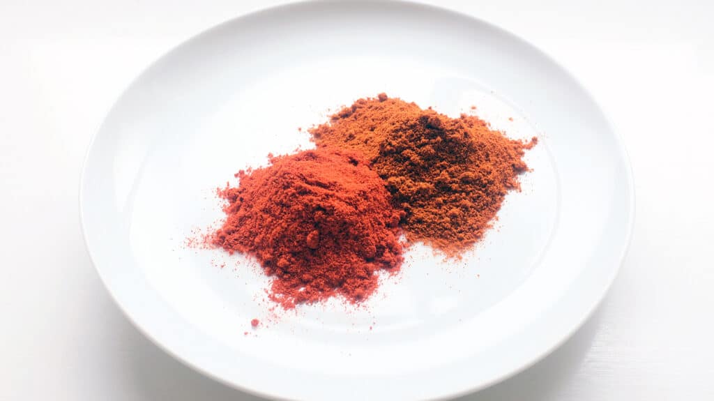 If you see red in a dish, there’s a good chance it’s thanks to a sprinkle of paprika or cayenne – both of which are dried and ground derivatives of different types of capsicum peppers. Cayenne brings the heat (and is often mixed into paprika to give it a kick). Paprika is often sweet, but ultimately nuanced and varied.