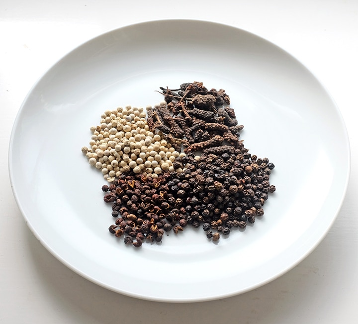 It’s best to buy peppercorns whole and grind them only at the point of use, as it loses its aroma quickly. For similar reasons, it’s best to add pepper at the end of the cooking process. In fact, these tips relate to all colours of peppercorns.