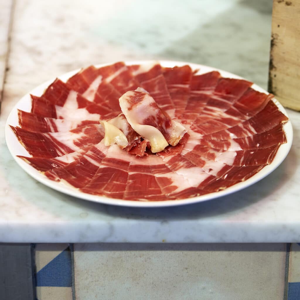 When I speak to David at Brindisa, who spends hours carving beautiful jamón, he describes the entire world disappearing the moment he has his knife in his hand. “Even when it’s noisy and busy with customers, I am zoned in on the leg of ham. It is my craft, and I want to pay respect to the pig and all the other people in this process.” After all, Dave’s is the last step in the leg’s five-year journey: the iberico pig being bred in Extremadura, cured in Salamanca and transported from there to Borough Market. It takes him three hours to carve one leg, but he doesn’t notice the time. “To call it an art sounds pretentious – but it is an art and I like to do it beautifully.”