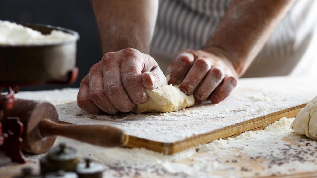 It’s why Matt Jones set up the Bread Ahead school. “We’re getting people back into using their hands again – using their senses,” he enthuses. “You need to smell it, see it, feel the changes in tension as the gluten transforms. It is like a sailing ship. You have to be super-aware of your surroundings, of what’s going on.” During the mixing and kneading there are constant “minute changes,” says Matt. “In temperature, in texture, in moisture. Feeling those as you knead, you feel connected to it.”