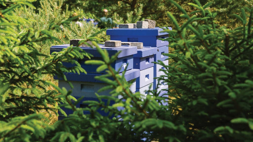 It is, quite literally, a virtuous circle. Bees help the farmers by pollinating the plants; the farmers, in an effort to encourage the bees, are setting land aside for rewilding. “Bees are busy, so they want to find the richest forage they can and mine it. A field of wildflowers will attract them” – generating biodiversity, a richer, more flavoursome honey for both bees and buyers, and more pollination for the farmer. It is, as a healthy ecosystem should be, a win-win. Problems arise when either the land or the bees themselves are exploited, either by monocropping or by the more “cynical” beekeepers, who harvest as much honey as they can and replace the bees’ natural, nutrient dense source of winter food with sugar syrup; a deeply unsustainable practice which affects the colony in the long run. “We have a producer who will not be able to supply us with heather honey this year because the rainy weather affected the heather flowering so badly, the bees have only just got enough for themselves this winter,” Sam laments. “It’s sad for us, because heather honey is delicious and popular, but it is the perfect example of how it should be – of beekeepers with a strong sense of values finding a balance with nature and putting the health of the hive first.”