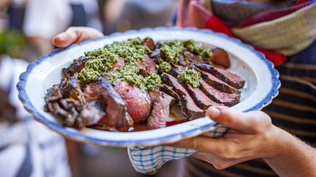 Barbecued venison with green sauce