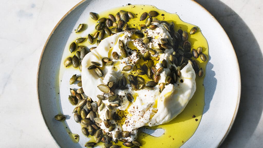 Fresh Italian cheese with the contrasting crunch of toasted seeds
