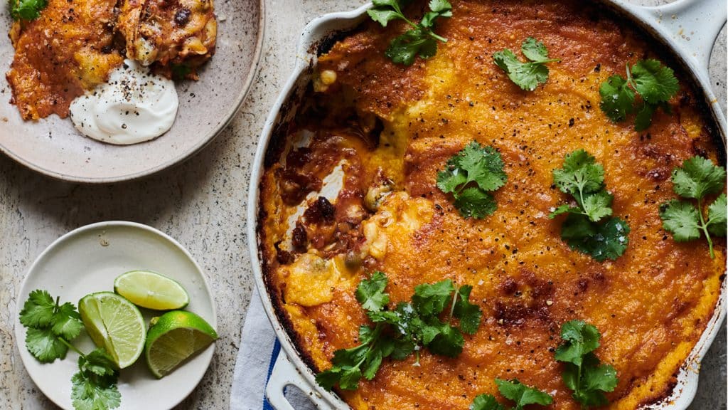 Chicken, pumpkin & black bean tamale pie