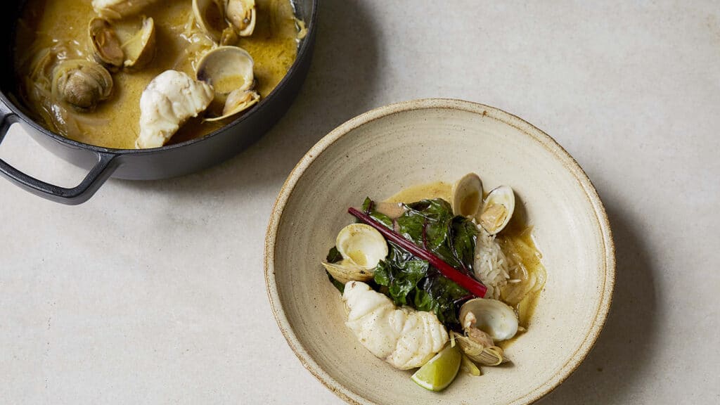 Curried monkfish & clams