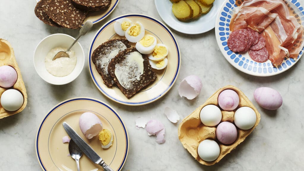 Dyed eggs with horseradish & rye bread