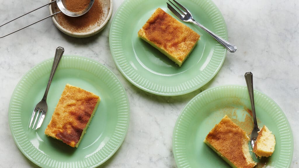 Bake for 40-45 mins, until the pie has puffed up a little and wobbles only a touch. Remove from the oven, then leave to cool and firm up before slicing. (It keeps well in a cool place for 2-3 days.) Serve with extra cinnamon dusted on top.