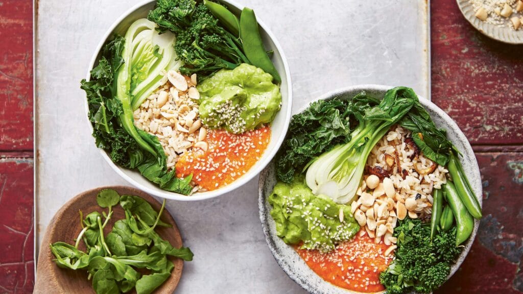 Divide between 2 bowls and top with a handful of the broccoli and kale and a spoonful of avocado. Serve with a good dollop of fresh and zingy sambal and a sprinkling of sesame seeds. I love my bowl with an extra helping of baby spinach for added greens and a lime wedge for zing.