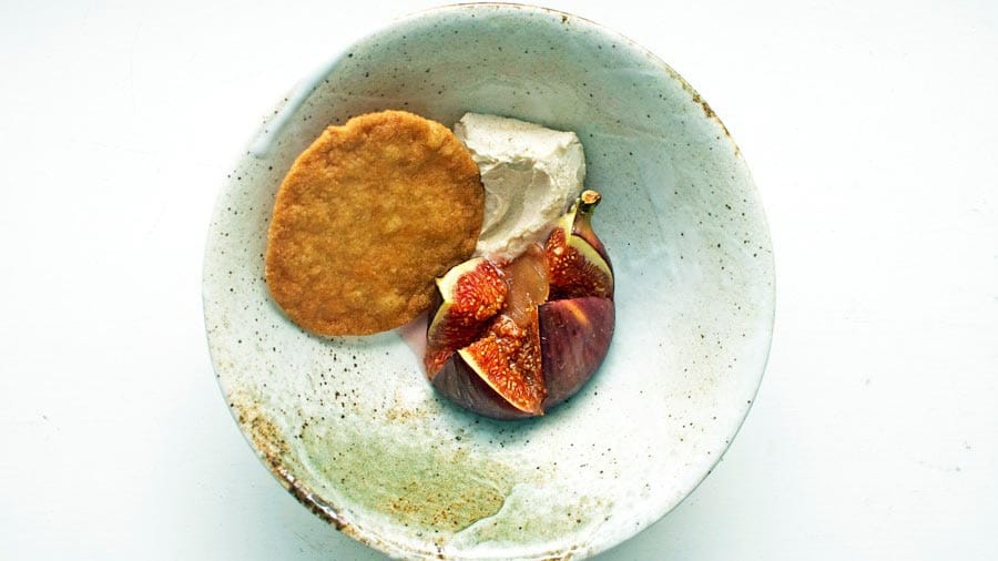 Ginger baked figs, butter biscuits & cinnamon mascarpone