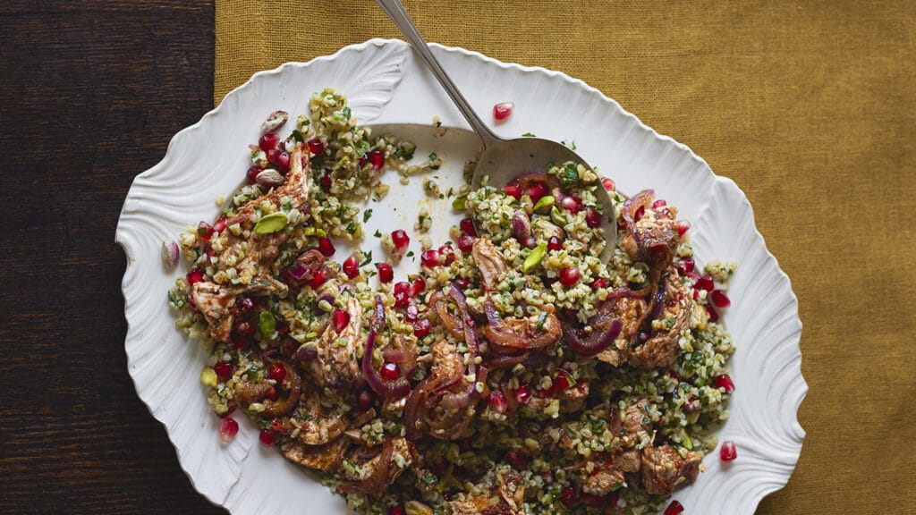 Harissa turkey salad with freekeh & pomegranate
