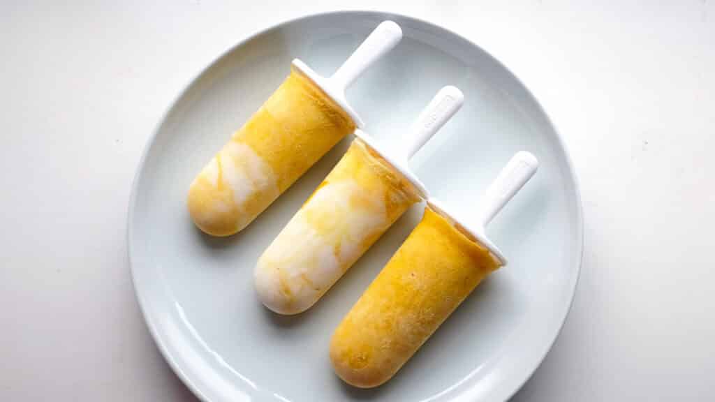 Grown-up ice lollies with gently bitter spices in a sweet fruit and yoghurt puree