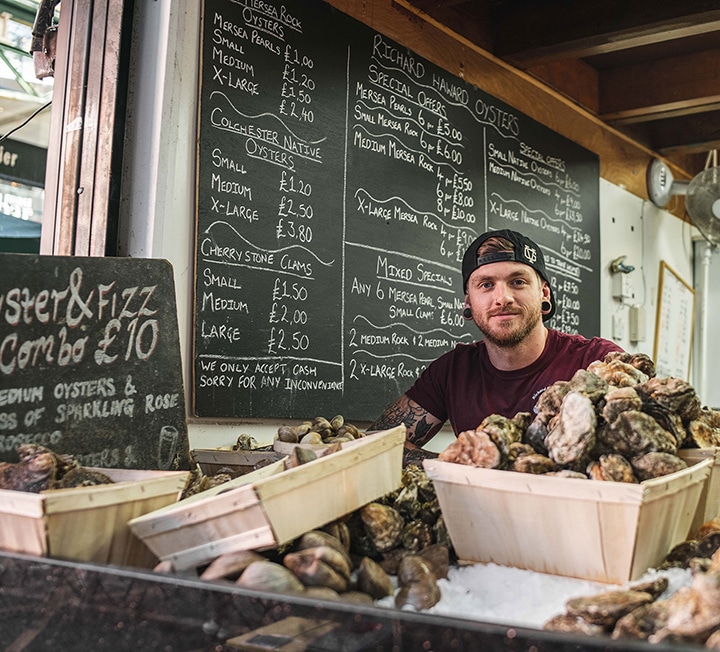 Shuck the oysters when you are ready to cook them, not before, then set aside for the moment. Rest the deep shells on a bed of salt on a baking sheet. Heat the grill to high.