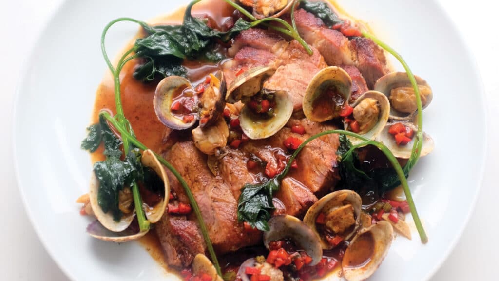 Ed Smith’s take on carne de porco à Alentejana: pork meat, Alentejan style