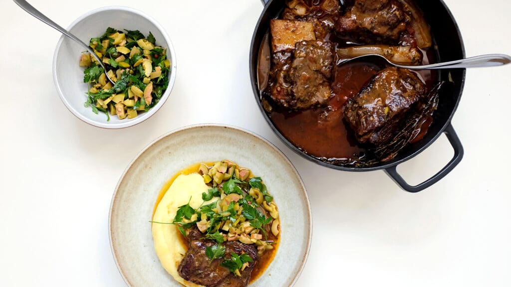 Paprika & sherry short ribs with deli olives