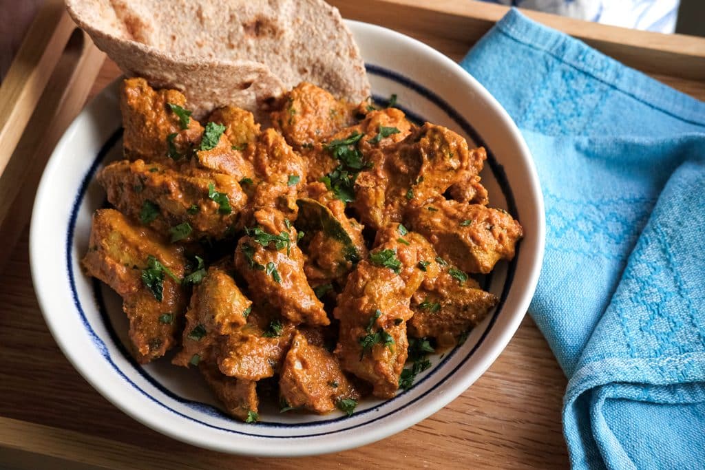 Tender chunks of grilled venison in a spicy masala sauce