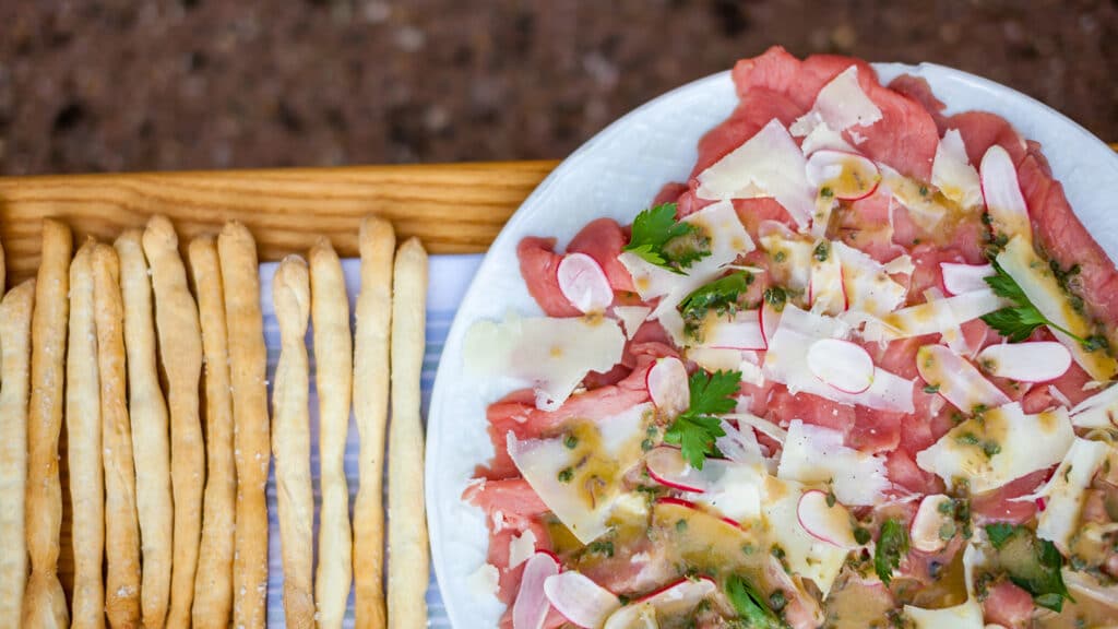Piedmontese veal carpaccio with pecorino & salted grissini