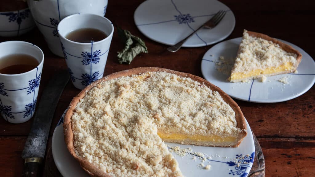 A Flemish sugar and custard tart with a velvety mouthfeel