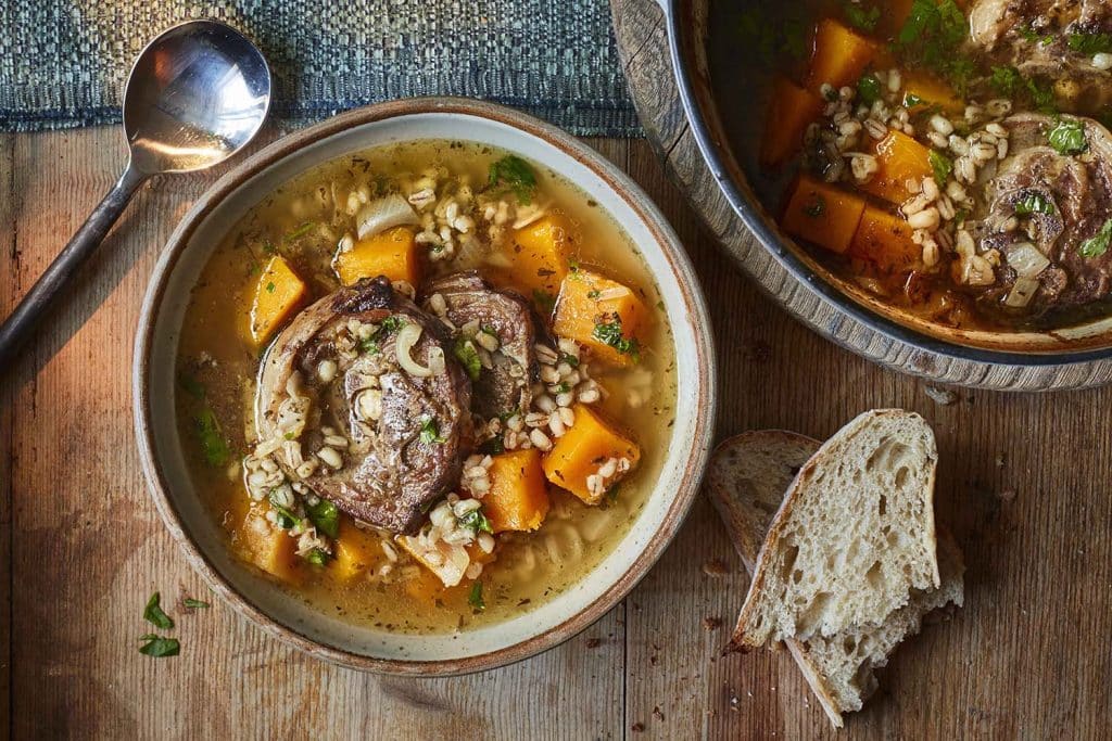 Scrag end, squash & barley broth