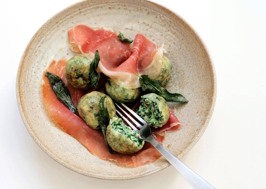 Pillow-light ricotta-based dumplings filled and paired with sweet, nutty Italian salume