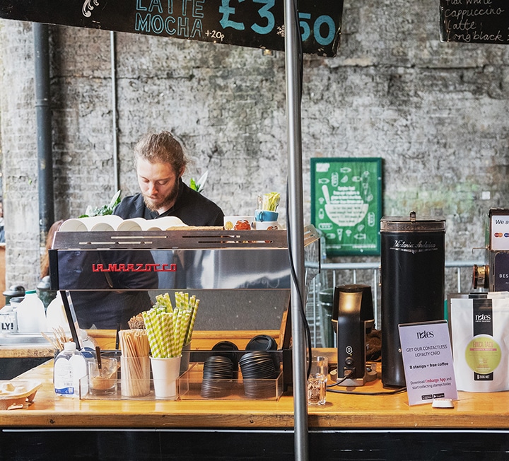 The expert baristas at the Flat Cap Coffee Co cart make perfect espresso-based coffees as well as selling freshly roasted beans sourced from a roastery just up the river from Borough.